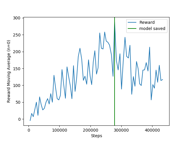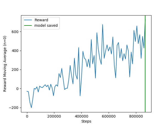 The main problem now is the traffic lights. The traffic lights occupy about 25 pixels in the image, and the agent struggles to associate those pixels with the punishment received when moving through a red light.