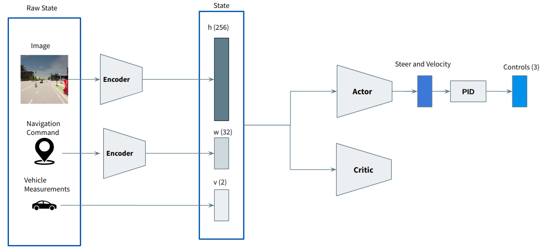 Instead of giving a navigation command to the agent, we can give the next 10 waypoints from the global planner, and then encode that information in the state using a neural network: